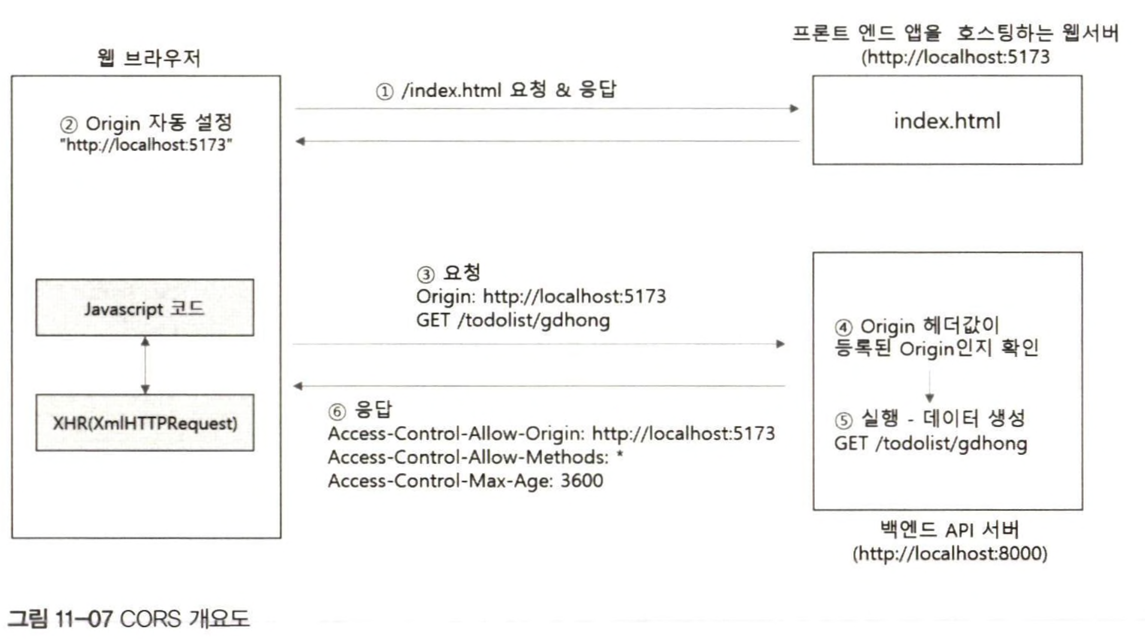 - 프록시 서버 사용: 서버 설정이 불가능한 경우, 로컬에서 프록시 서버를 설정하여 동일 출처로 간주되도록 요청을 보냄
